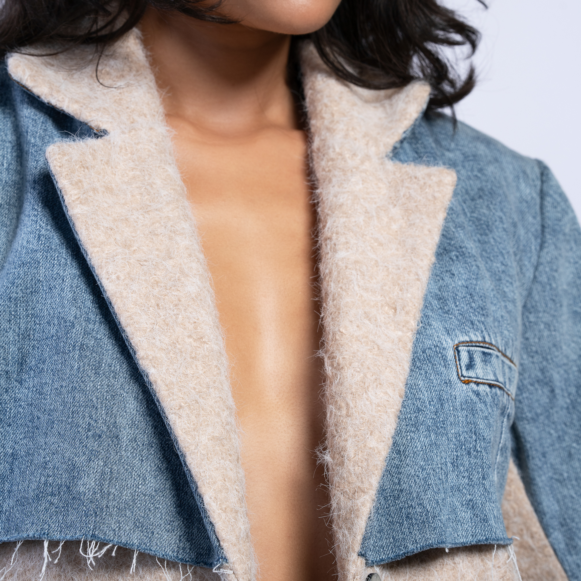 Denim Fur Jacket – Blue Denim & Beige Fur